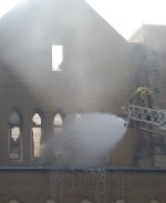 Demolition crews are undertaking the difficult task of bringing down portions of Aurora United Church after a blaze reduced the nearly 140-year-old Aurora landmark to ruins on Friday.