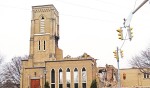 They have been a landmark in Aurora for nearly 140 years but, on Tuesday, demolition crews began the painstaking task of reducing the two towers of the Aurora United Church (AUC) to rubble.