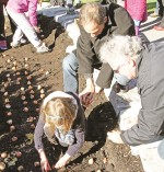 Saturday’s cold snap wasn’t enough to keep Aurora’s Cora Van De Beek away from coming out to the Cenotaph to plant a tulip or two.