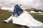 Friday's powerful winds felled the Aurora Sports Dome, along with trees and power lines across Aurora.