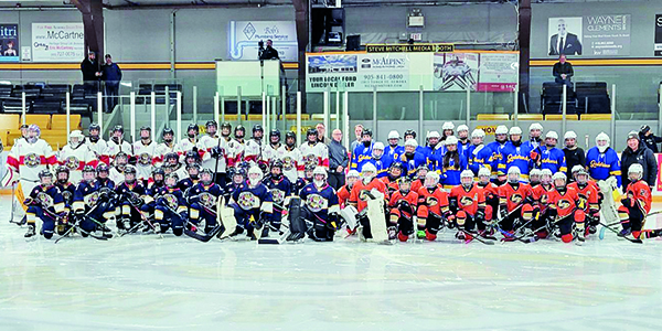 President Dubeau welcomed the guests assembled, including two teams from California, that took part in the on-ice festivities. Mayor Mrakas refereed the ceremonial puck drop and the 60-team international tournament was opened officially.