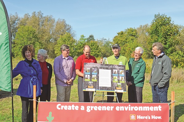 “We are excited about the unveiling of our new collection of trees: the Native Conifers of Ontario, which hopefully will come with complete educational information identifying characteristics which will hopefully bring an end to what I call ‘conifer confusion’,” said John Wilson of the Arboretum at the gathering. “No longer in Aurora will we be tolerating the default when you’re referencing a conifer. If you don’t know, ‘Christmas Tree’ and ‘Pine Tree’ will no longer be accepted.”