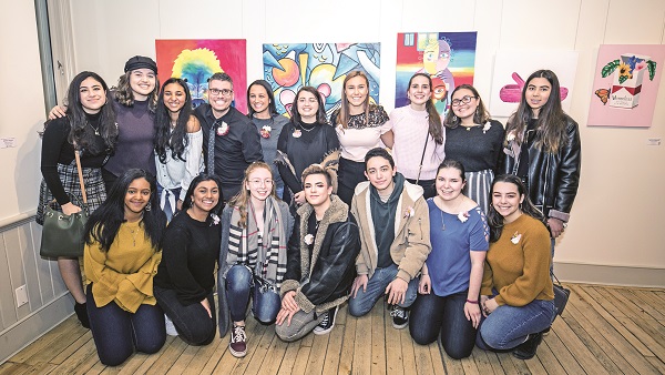 Ms. Nicolo said she was inspired to see the students from three of the four participating schools come out the previous Friday to collaborate on the installation, taking their cues on how to prepare the artwork for installation, how to design a show, and hang as much as possible on the walls themselves.