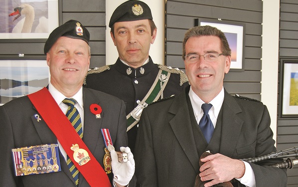 Ken white of the Royal Canadian Legion’s Ontario Command, Mayor Geoffrey Dawe, Lt. Chris Wattie of the Queen’s York Rangers, and David Veitch of the White Heather Pipes and Drums will take active roles in Sunday’s Tattoo. (Auroran photos by Brock Weir)