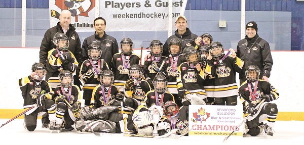 The Aurora Tyke A Tigers were victorious in their first ever tournament, taking the Bradford Blue & Gold Classic Tyke Select II Championship” December 5 through 7.
