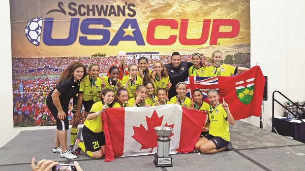 “Severe thunderstorms had tournament play suspended for long hours,” said Bisogno-Coutts. “The girls waited patiently in the team hotel to find out when or if they would be able to play their championship game. What was supposed to be a 3 p.m. kick-off turned to 5.45 p.m.”