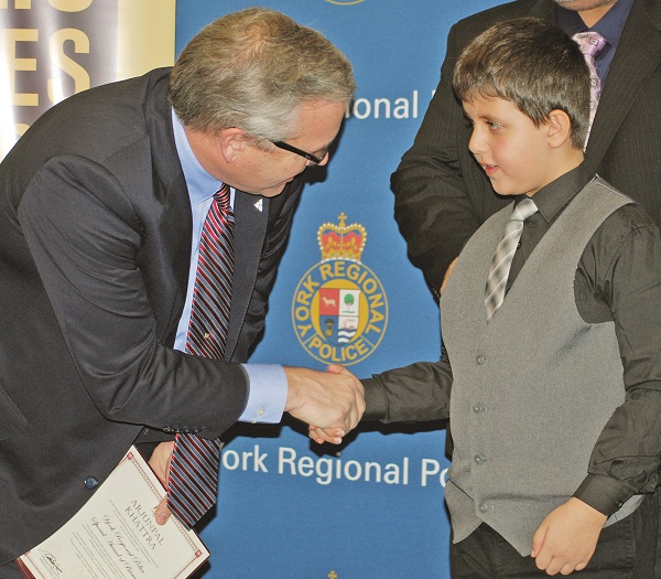 Awards hail Public Heroes across the GTA![]() Seven-year-old Arjunpal Khattra was hailed as a hero this week at the York Regional Police's Aurora headquarters after helping save his father after he fell down a well. The incident occurred in the early hours of November 9 in Markham, when the boy knocked on the door of a nearby home seeking help in rescuing his father who was trapped in a well just four feet wide and almost 30 feet deep. The previous evening, Arjunpal was asked to stay in the car as his dad went out to check on a property. After falling asleep, he awoke to find his dad had not returned and he went out to look for him. Arjunpal was saluted by the York Regional Police, Toronto Paramedics, emergency responders from across the GTA, and Members of Federal and Provincial Parliament for his bravery on Monday at the launch of the Public Heroes Awards campaign, hosted by the Intercultural Dialogue Institute of the GTA. Also recognized for their community contributions were Chris Thind, who received the Public Heroes Youth Recognition Award from Toronto Paramedics for his service in the 1st Downsview Medical Venturer Troop, and efforts on the road to achieving his dream to be a paramedic. “There is no question that Chris' name is well deserved to be brought forward and we have no doubt he will continue to act as a role model for his fellow MedVents in the years to come as he continues to provide volunteer service to the residents of Toronto and beyond,” said Toronto Paramedics. Here in York Region, Newmarket's Cody Kaslove was recognized with the award for his considerable contributions to many facets of the community, including volunteerism in his church community at the local and international levels, work with the YRP's Community Safety Village, the Anti-Bullying Advisory Committee for the York Region District School Board, all with an eye of becoming an officer with the York Regional Police. Toronto Police also recognized Lovejeet Bhatti, an alumna of the Youth in Policing Program, for her continuing involvement in the course. “Given the events of the past few days in Europe and over the last year in North America, we can understand the need for greater social cohesion and for leaders within our communities to help emergency responders to find a better way to connect with our community,” said Toronto Deputy Police Chief Peter Sloly. “[Youth] have a great role model in Lovejeet and the recipients here.” But, now it is time to salute the men and women of the police, fire and EMS forces these youth continue to support with the Public Heroes Awards. Nominations are now being accepted through March 12 for members of these services who have demonstrated altruism, dedication, and community involvement. Winners from across the GTA will be recognized in a ceremony in Oak Ridges this April. “We encourage everybody in the GTA to go to www.publicheroes.org to nominate a police officer, firefighter or paramedic for an award on those three basic criteria,” said M. Fatih Yegul of the Intercultural Dialogue Institute. “These awards are just one way that we, as a community, can honour the excellent work police, firefighters and paramedics do each and every day.” |