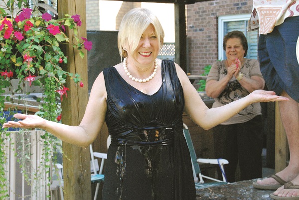 “I have been challenged and I have decided to do it in style,” said Ms. Brown as Mr. Springford held the bucket of icy water over her head. “I am supporting all those who are suffering with ALS and hoping that our contribution is going to help make ALS a forgotten disease.”