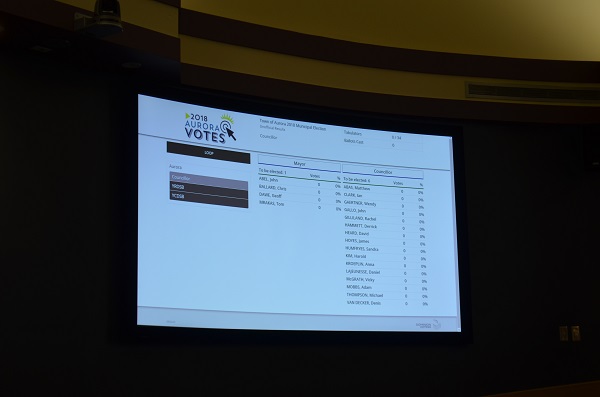 Among the first candidates to arrive were incumbent Geoff Dawe and Tom Mrakas, both of whom are vying to be Aurora’s next mayor.