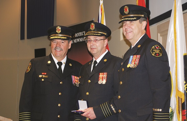 Attended by Newmarket-Aurora MPP Chris Ballard, Aurora Councillors John Abel, Evelyn Buck and Wendy Gaertner, and Newmarket Councillors Dave Kerwin, John Taylor and Jane Twinney, the ceremony recognized not only the long-standing service of individual firefighters, but new hires to the force, and people working behind the scenes to keep the CYFS going.
