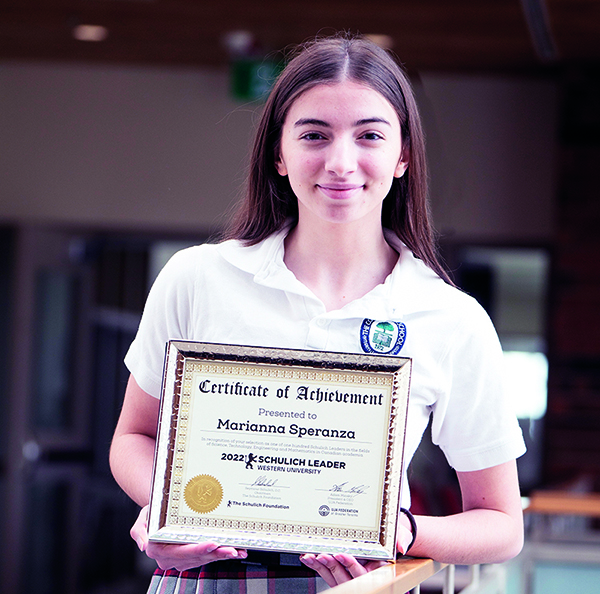 “The Schulich Leaders Award is designed to recognize that unique individual with a STEM mind and an entrepreneurial heart, and that is Marianna,” says David Huckvale, Director of Post-Secondary Counselling at CDS. “She has created, founded and led at CDS and beyond. We can’t wait to see what comes next.”