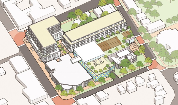 This area houses the Aurora Public Library, Aurora Cultural Centre, as well as the former home of the Library and Aurora Seniors’ Centre, whose futures have been up for debate for well over a decade. Under this new plan, the latter two buildings are history in favour of a new multi-purpose building that extends outward to Yonge Street, taking the fact the two retail blocks north of the Aurora Public Library are available for purchase.