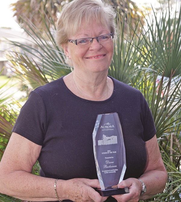 Long-time volunteer Diane Buchanan says she was “shocked” before being moved to tears upon being named Aurora’s Citizen of the Year this week.