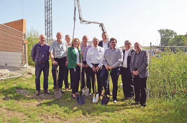 Helping to turn the sod on the new building, which will boast 60 assisted living units, 20 residential units in memory care, and 110 independent living suites ranging in size from 950 to 1,420 square feet were Newmarket-Aurora MP Kyle Peterson, MPP Christine Elliott, Mayor Geoff Dawe, Newmarket Mayor Tony Van Bynen, Newmarket Regional Councillor John Taylor, and a number of board members from York Region Christian Seniors Homes, Inc., the parent non-profit of Meadows of Aurora.