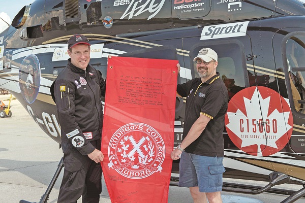 The trek, which landed Dengler, his father Bob, a resident of Aurora, and ace pilot Rob “Dugal” MacDuff in the history books, was the first Canadian circumnavigation of the world by helicopter, and the first father-son circumnavigation by light aircraft in aviation history.