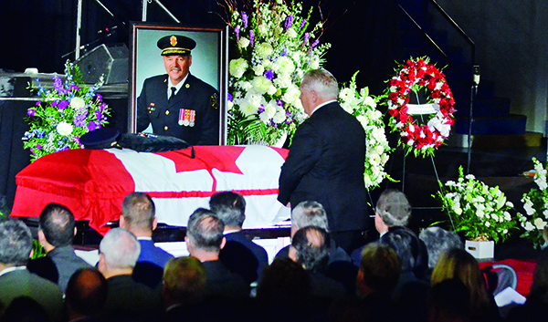 The tribute was announced by Mayor Tom Mrakas on Tuesday as Premier Doug Ford, Solicitor General Michael Kerzner, York Regional Chair Wayne Emmerson, and the Councils of Newmarket and Aurora joined representatives from fire services across Ontario at Laing’s funeral at the Ray Twinney Complex.