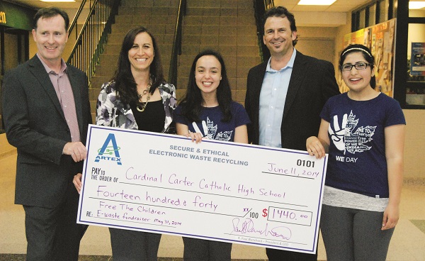 After collecting 10 tonnes of electronic waste last month, students in Cardinal Carter’s Free the Children club helped take a lot of weight off the shoulders of local residents, as their garages became piled higher and higher in obsolete electronics.