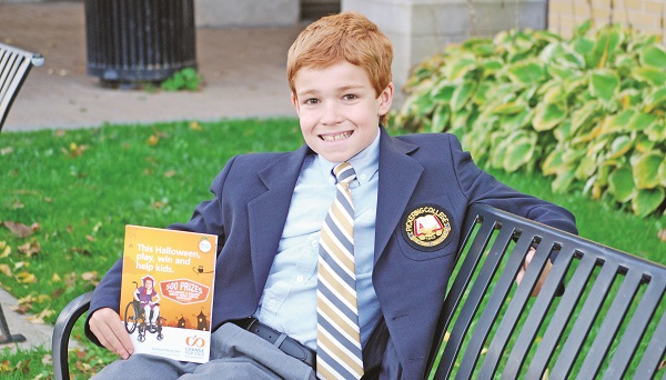 Alexander, 10, wouldn’t mind scoring the first prize – a weekend stay at Great Wolf Lodge – for his, and nine other families – but right now he’s focused on getting these “coins” out to make as many people as possible to make a difference through the Change for Kids program, spearheaded by Toronto’s Holland Bloorview Kids Rehabilitation Program.