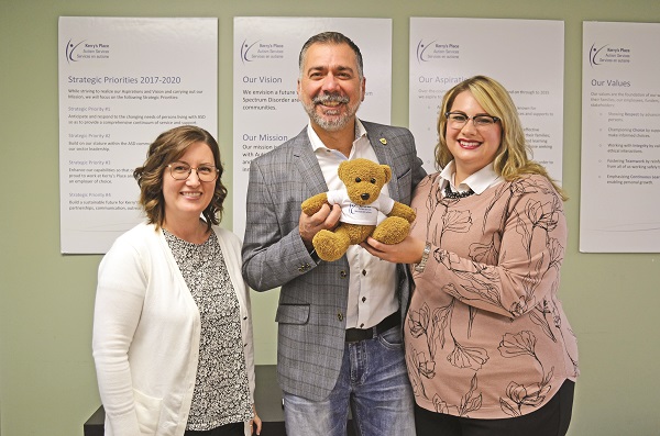Among the first to be a part of this year’s Kerry Bear Challenge is Mayor-Elect Tom Mrakas, who received a Kerry Bear of his own on Wednesday morning from Ms. Tansley and Kerry Brown, Fundraising Assistant for Kerry’s Place Autism Services.