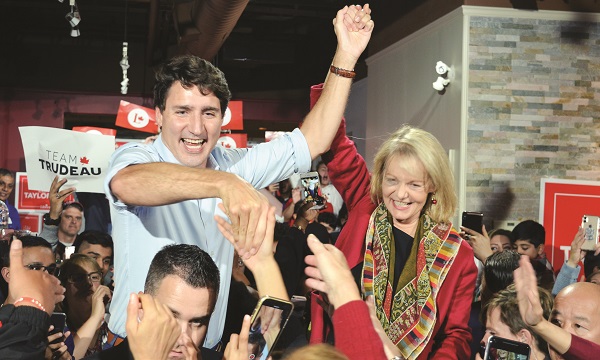 Hundreds of Liberal supporters took time out of their Thanksgiving Sunday to welcome Liberal leader Justin Trudeau to Aurora’s two Federal ridings in the home stretch of the 2019 Federal Election campaign.