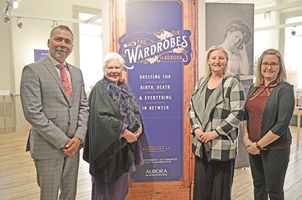 After a look at historic photos showing Aurora’s evolution, the Lieutenant-Governor headed upstairs to take in art created by students at St. Maximilian Kolbe Catholic High School as part of the Mayor’s Celebration of Youth Arts before taking in The Wardrobes of Aurora, the latest exhibition presented by the Aurora Museum & Archives.