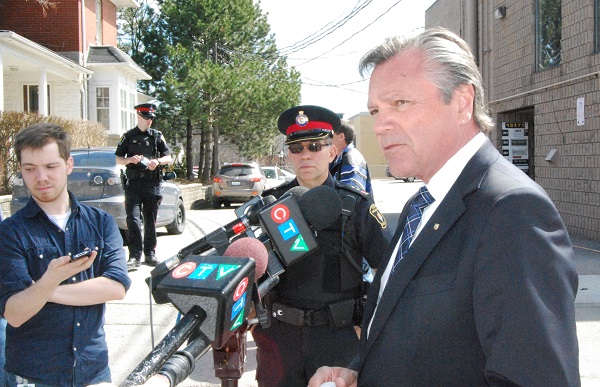 Among those on hand watching the scene unfold were Mayor Geoffrey Dawe, Member of Provincial Parliament Frank Klees, along with Councillors Chris Ballard and John Gallo.