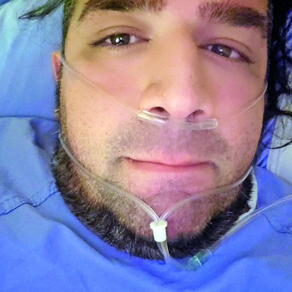 “COVID took over my whole body,” says Saberi of what he felt just a few hours after testing positive. “It attacked my lungs, my heart, and I had a fever of 41. All the liquids in my body were drained, I was dehydrated, I was dry-heaving. I rushed to the hospital and when I got there they put me in the ER right away and into the ICU on oxygen.