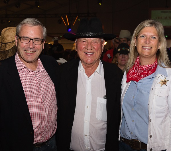 Magna founder Frank Stronach, pictured here at last month’s Hoedown with MP Leona Alleslev and MPP Chris Ballard, made Aurora the company’s base. Auroran photo by Glenn Rodger