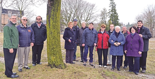 A contemplative group gathered around a tree and the remains of a brick pathway at the corner of Yonge and Tyler Streets on Monday morning to remember what once was – and consider what’s yet to come.