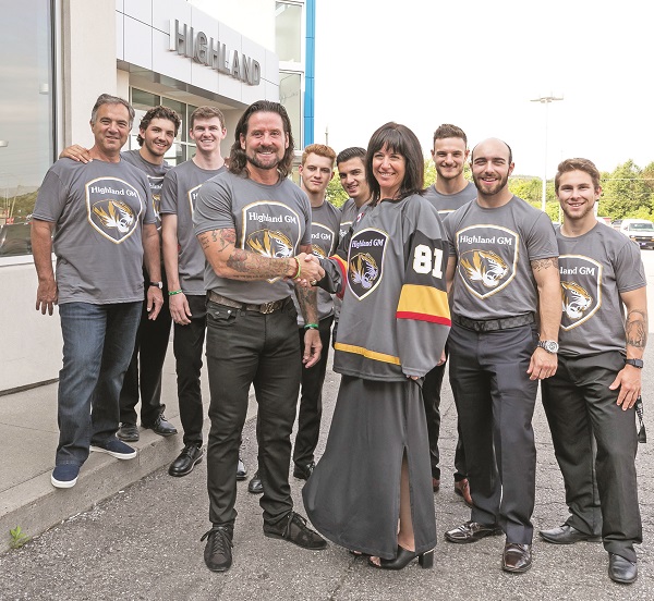 Tigers owner Jim Thomson joined staff at Highland GM in Aurora on Saturday to unveil the new moniker for the Junior A hockey club, which will go by the name Highland GM Aurora Tigers for the upcoming 2018-19 season.