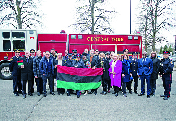 The contributions of Black Canadians to both the country and the local community were saluted on Thursday afternoon as dignitaries gathered at Town Hall to raise the Pan-African flag to kick-off Black History Month.
