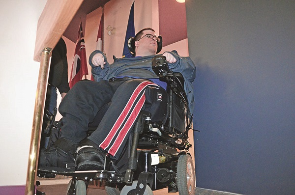 Following last Wednesday’s meeting of Aurora’s Accessibility Advisory Committee, Mr. Barker invited The Auroran to accompany him as he attempted the trek down to the podium, a place where the politically-minded twenty-something would ideally like his voice to be heard.