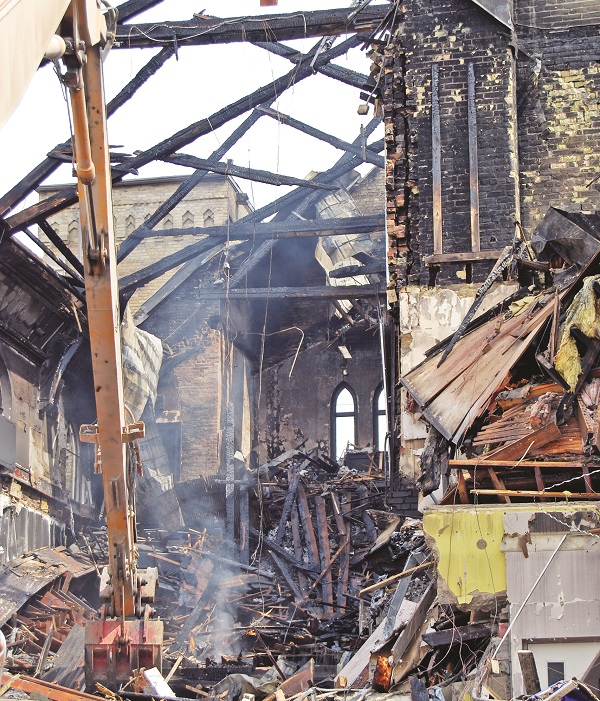 “We had to pull our crews back as a result of deteriorating conditions with the fire. Eventually the fire worked its way through the roof,” said Leslie, noting they then had to deploy their aerial streams of water directly onto the church roof. “The nature and the types of these fires was such it was very difficult to get to the scene of the fire with the roof structure still in place. It is a conundrum because you can’t get at it from inside and you can’t get at it from the outside until the roof starts to give way. When the roof at the rear started to collapse, that exposed the rear side and we were able to put it out quickly.
