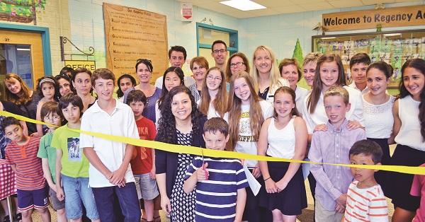 Regency Acres formally opened their new “parkland” on Thursday at a ceremony attended by an at-capacity crowd of students, teachers and parents. The bright walls, visible from the streets, are dotted with silhouettes of students living out the newly-minted Regency Acres pledge, developed by students to create the best environment possible.