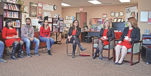 Donning the red and black suitable for the international observance, Aurora-Oak Ridges-Richmond Hill MP Leona Alleslev was joined at the Committee’s offices in north Richmond Hill by Markham-Stouffville MP Jane Philpott, Canada’s Minister of Indigenous Services and former Federal Minister of Health, to hear concerns of outreach workers that have been informed by experiences in the field.