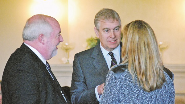 (Prince Andrew speaks with event organizers Brian North and Kimberley Kerr near the end of his visit to Aurora on Thursday afternoon. Auroran photo by Brock Weir)