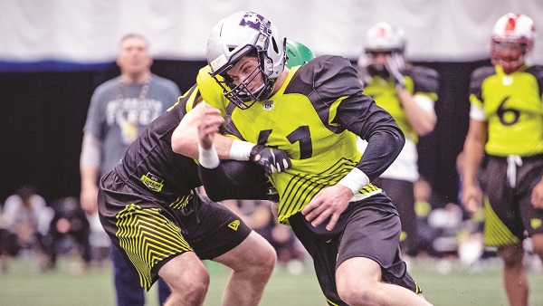 After being named both the USports and OUA Outstanding Stand-Up Defensive Player of the Year, Sopik’s name gained on team’s draft rankings come the CFL Combine last month, where he posted a 4.79 second 40-yard dash as well as ten reps on the bench press, before strapping on the pads and showing his greatest asset: his mental tenacity.