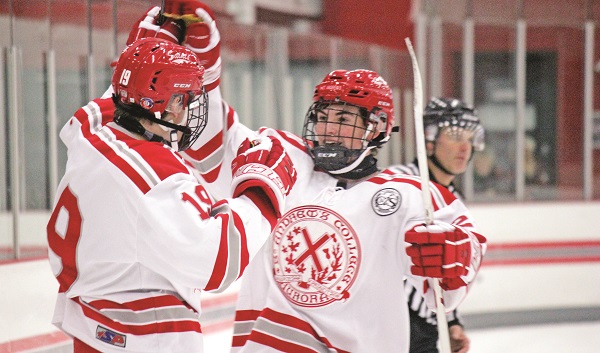 Ridley College was the first CISAA team to solve the Saints with a 4 – 2 win on Sunday, but it came only with a tremendous effort from their goaltending. Chris McGonigle was forced to contend with 54 shots from the SAC offense, while Chapman was tagged with his first loss in facing 26.