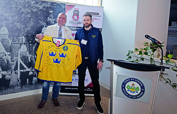 “The Town of Aurora is absolutely honoured to host Team Sweden,” said Mayor Tom Mrakas at last Wednesday’s event. “The Town of Aurora is twinned with Leksand, Sweden, so it is particularly meaningful that we’re able to host Sweden in our hometown this week. The Town of Aurora is also a very strong supporter of sports. Under the guidance of the Town’s Sports Plan, the work that is being done to strengthen our sport for women and girls in sports, create a strategic approach to sport tourism, develop more sport opportunities and provide workshops to further enhance the sport community. Of course, we’re working hard to cultivate the journey of young female athletes.