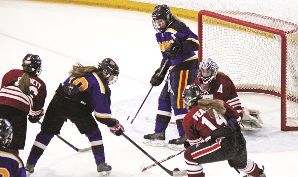 For the fourth year in a row, the varsity girls hockey Mustangs will skate in the YRAA championship series, after an offensive onslaught spelled out a quick semifinal series with Stouffville High School.