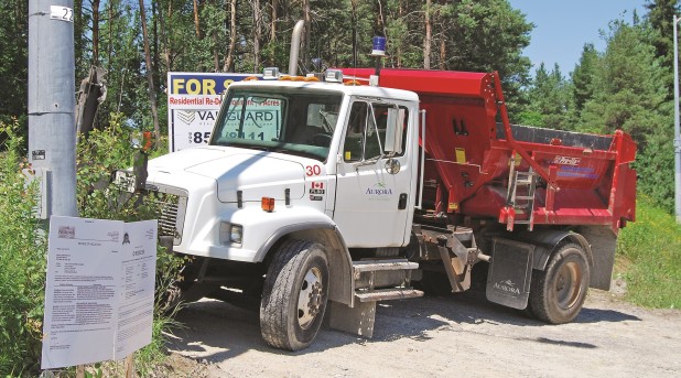 Signs were posted and municipal vehicles were placed in front of the entrance of the property on Yonge Street near Vandorf Sideroad. As The Auroran reported on Wednesday, the subject had been in the centre of a storm after 1.5 hectares of trees were removed from the Oak Ridges Moraine property.