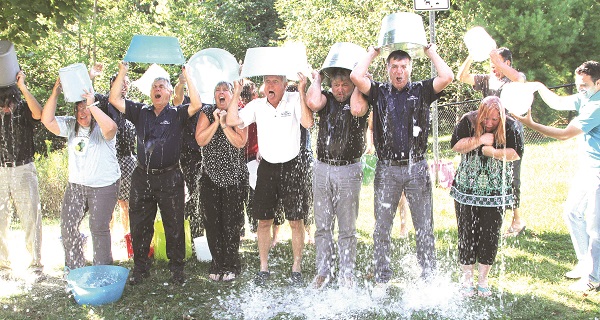 Council and staff at Town Hall took the plunge in the ALS Ice Bucket Challenge last week, saying “BALS!” to the disease, which claimed the life of one of their loved ones.