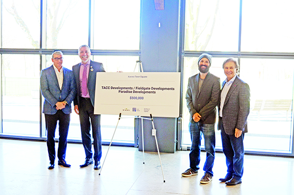The contributions from TACC Developments/Fieldgate Developments, Paradise Developments, Treasure Hill and Addison Hall Business Park were announced at a reception Tuesday morning at the historic Aurora Armoury.