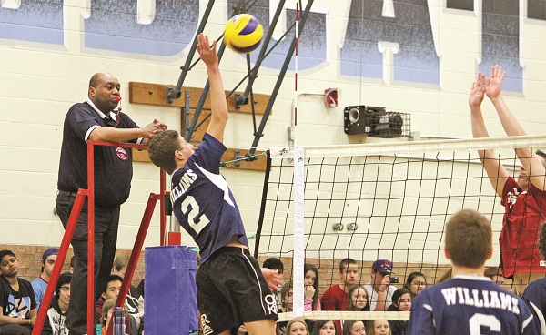 The students of G.W. Williams high school were treated to an afternoon of fun heading into the March Break, when their York Region championship junior boys volleyball team faced off against a team of staff members for a friendly match.