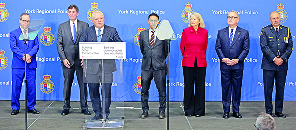 The funding was announced by Dominic LeBlanc, Canada’s Minister of Public Safety, at the York Regional Police’s Aurora headquarters on January 31, as Ontario Premier Doug Ford, YRP Chief Jim MacSween, and a host of dignitaries from all levels of government looked on.
