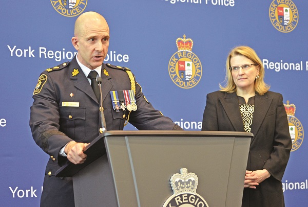 “I did not see my future of policing anywhere but here at York Regional Police,” said Carrique on Monday morning, speaking alongside Minister Jones at a press conference held at the YRP’s Aurora headquarters.